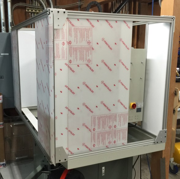 Total charge for the door was $336 plus $22 shipping, so total parts cost was about $750. You can also get polycarb sheets from 80/20 but they didn’t seem to sell this thickness (or maybe I misunderstood their ordering info). I wanted thicker panels, not for more protection, but just so they (hopefully) wouldn’t wobble. In any case, I was surprised how expensive this stuff is.