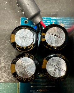 UPDATE 9/16/2024: Another potential problem area for L1s are the 2200uF output filter capacitors (C504,C505,C506,C522) in the +/-27V power supply boards. I have begun to find these cracked open and bulging at the tops. If you see this on any of these capacitors, all of them (8 or 12 depending on the model) should be replaced. Even if you don’t see damage, it might be a good idea to replace them anyway as the parts cost for twelve is only about $20-30. There are also four 470uF output capacitors on the aux supply board (C625,C629,C633 and C636) made by the same manufacturer (“NOVER”) that should probably also be replaced.