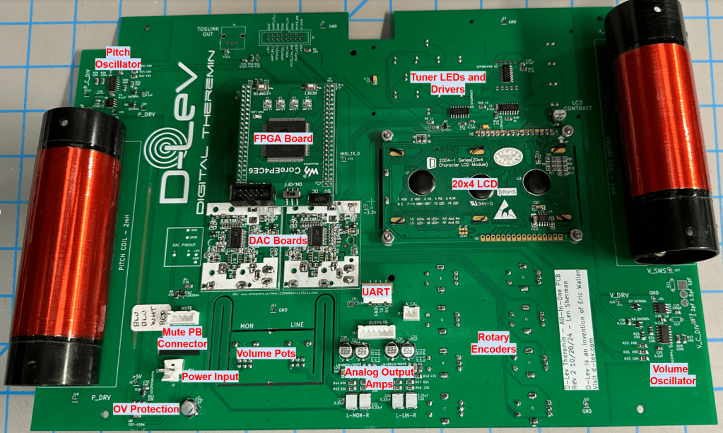 D-Lev is an open source project developed by Eric Wallen, and described in detail at: https://d-lev.com/. I discovered it while researching problems we were having with our Moog Claravox. The Claravox was “supposed” to be the ultimate theremin from Moog, a company that has been synonymous with theremins and synths in the modern era. I don’t know if it was Eric’s intent, but the D-Lev seems to be the instrument that Moog *should* have made.