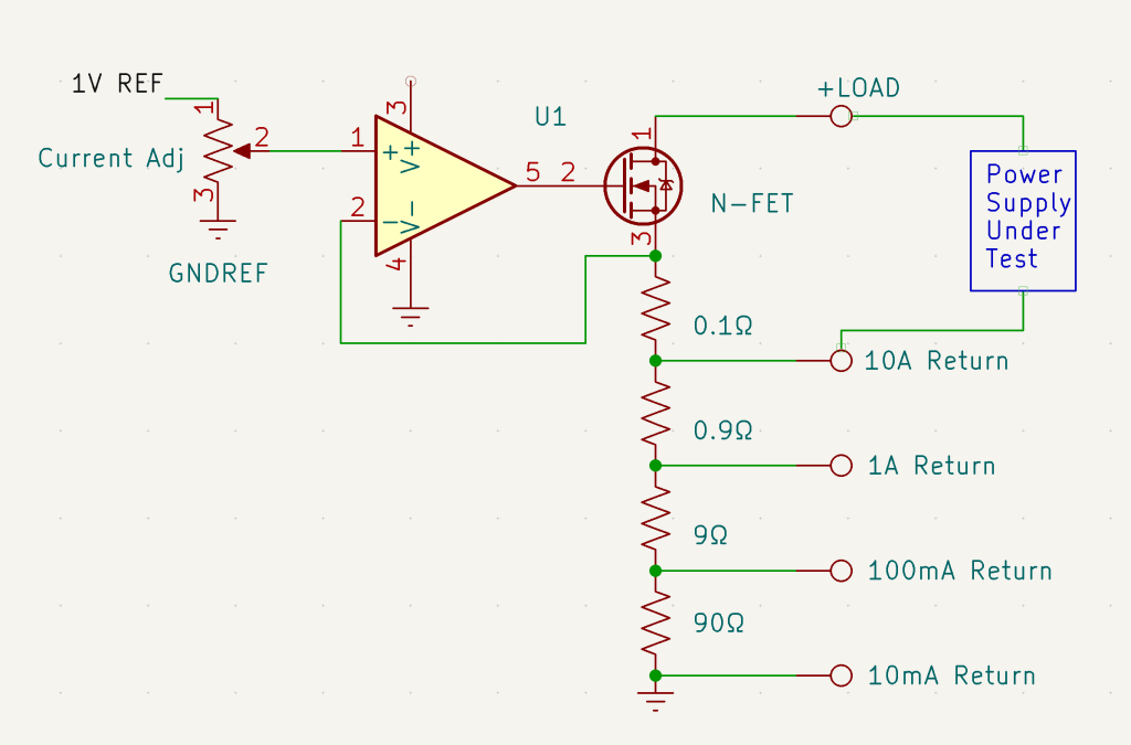 This simple electronic load for testing power supply circuits was a popular lab-built piece of test gear at Maxim Integrated Products. It was known as the “Larry Load” by the lab rats at Maxim because it was designed by an applications engineer named Larry Carr. Commercial electronic loads were available from companies like Kikusui, but those were not cheap (and Maxim famously *was* back then) and Larry Loads were unique in their simplicity, wide range, and every-day utility. Even today, I’m unsure if a commercial load instrument can dial in a load of 10uA. After retiring from Maxim. I had always intended to build a few of these for home lab use. I finally got around to it.